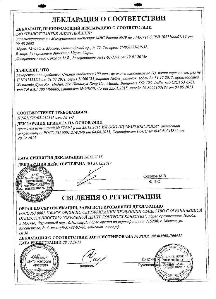 Что важно понимать. Разнообразие тщательно подобранных растительных компонентов определяет уникальность препаратов Спеман. Спеман назначают при мужском бесплодии, а Спеман форте – для нормализации половой функции у мужчин. Одинаковое название и практически состав препаратов не означают идентичность лечения. Поэтому самолечение препаратами исключается, только специалист после поставленного диагноза определяет схему лечения. Спеман в аптеках предназначен для продажи без рецепта специалиста.