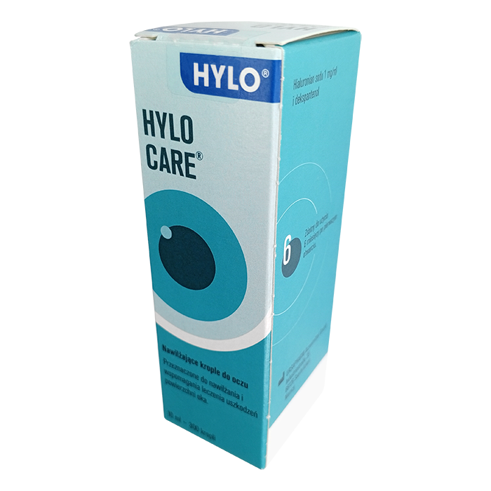 Hylo-Care содержит натриевую соль гиалуроновой кислоты, которая образует ровную и особо прочную пленку влаги на поверхности глаза. Hylocare также содержит декспантенол, который дополнительно питает и освежает глаза.