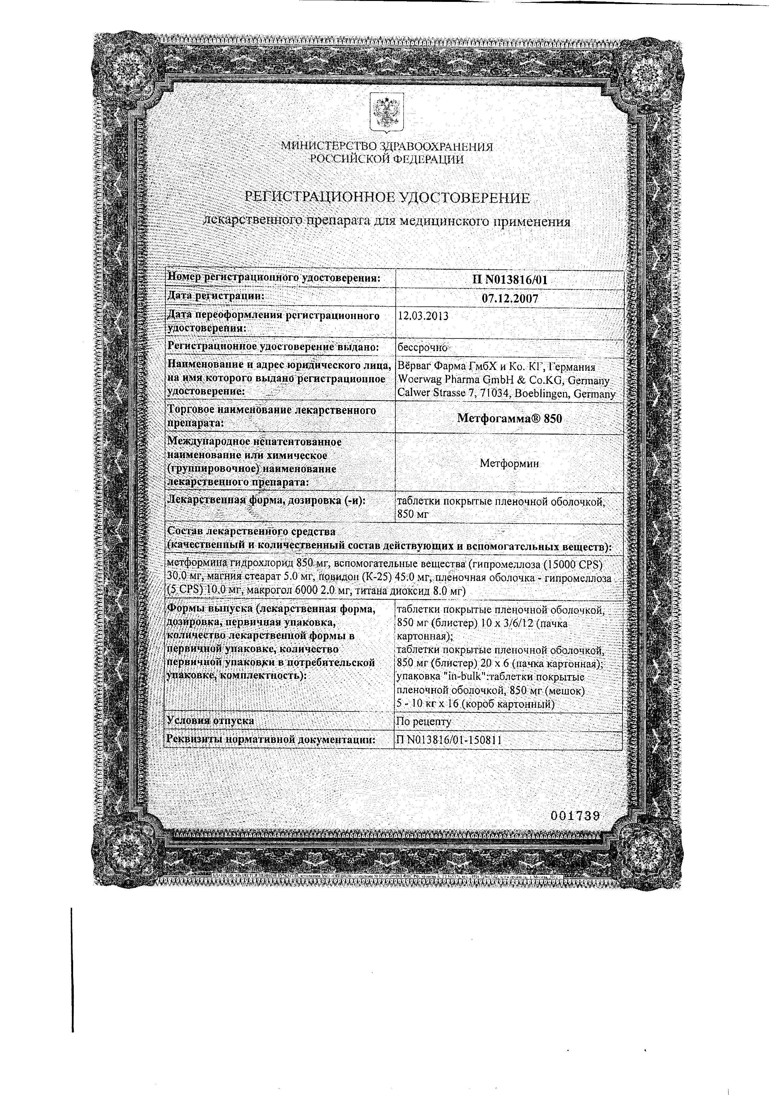 Инструкция по применению Метфогамма 1000мг таб. №120