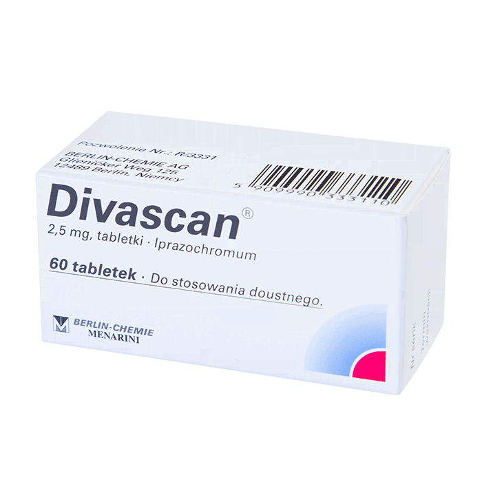 Диваскан – противомигренозное средство, действующим веществом которого является ипразохром. Диваскан используется для профилактики мигреней различного происхождения, а также для лечения гемофилии, диабетической ретинопатии, гиперфибринолитического кровотечения и геморрагического диатеза. Принцип действия основан на снижении проницаемости сосудов и купировании метаболических нарушений мозгового кровообращения.