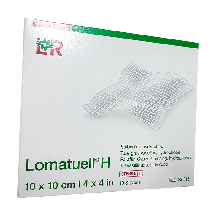 Ломатюль Н (Lomatuell H) – стерильная, крупноячеистая хлопковая повязка, пропитанная нейтральной водоотталкивающей (гидрофобной) мазью. Сетчатая структура обеспечивает свободное впитывание выделений из раны во вторичную абсорбируемую повязку. Повязка не прилипает к ране, снимается легко и безболезненно.