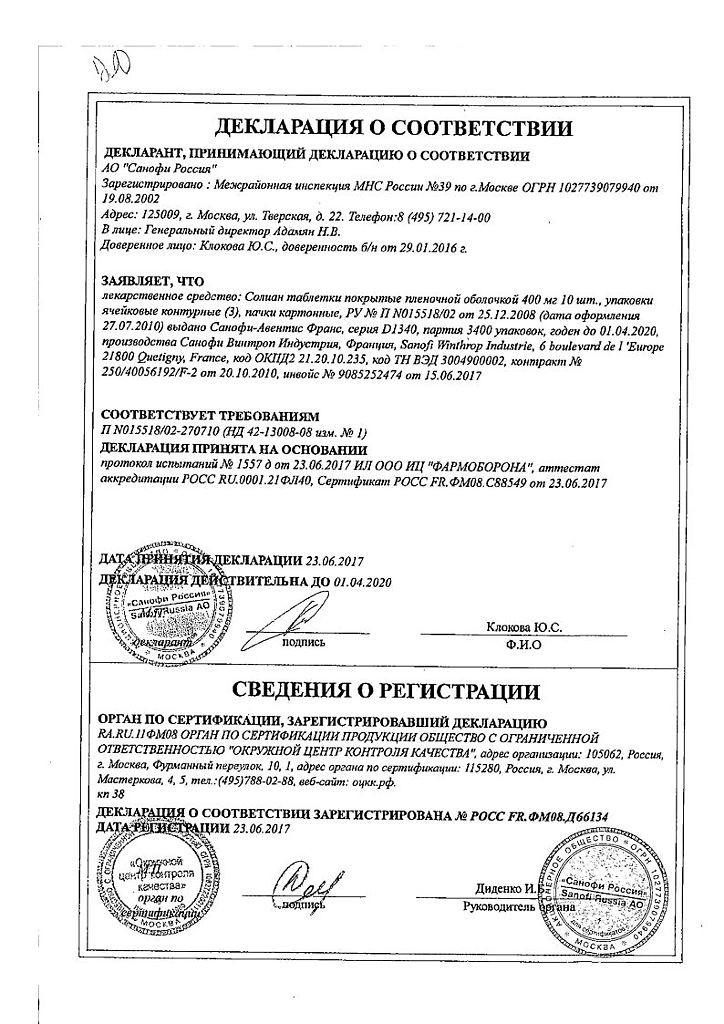 Необходимо избегать употребления алкоголя и применения лекарств, содержащих алкоголь, во время лечения Солианом.