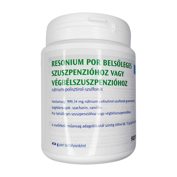 Применение Резониум может вызвать различные побочные эффекты. При слишком низкой концентрации калия в крови (мышечная слабость), иногда при слишком низкой концентрации кальция (мышечные судороги), потеря аппетита, раздражение желудка, тошнота и иногда рвота, запоры или диарею. Это также может привести к накоплению соли и воды в тканях (отек), потому что препарат содержит натрий.