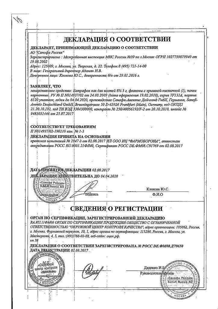 Противопоказания. Батрафен лак нельзя использовать при наличии аллергии на один из его ингредиентов.