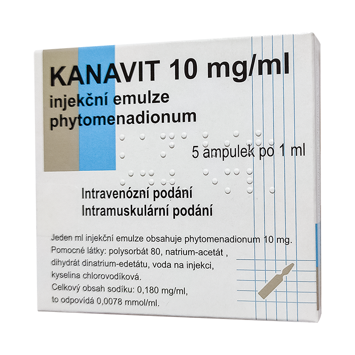 Действующим веществом препарата Канавит является - фитоменадион в дозе 10 мг - витамин К1. Форма препарата - раствор для инъекций. Канавит содержит синтетический витамин К1, который необходим для синтеза факторов свертывания крови - протромбина, фактора VII, IX и X. Недостаток витамина К1 в организме приводит к повышенной склонности к кровотечениям.