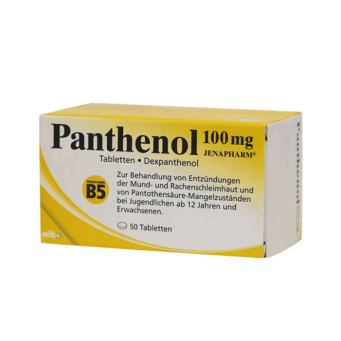 Применение. Таблетки Пантенол следует держать во рту до полного рассасывания. Взрослым при заболеваниях слизистой оболочки — 200–400 мг в день через равные промежутки времени; при недостаточности пантотеновой кислоты — по 100 мг, независимо от приема пищи.
