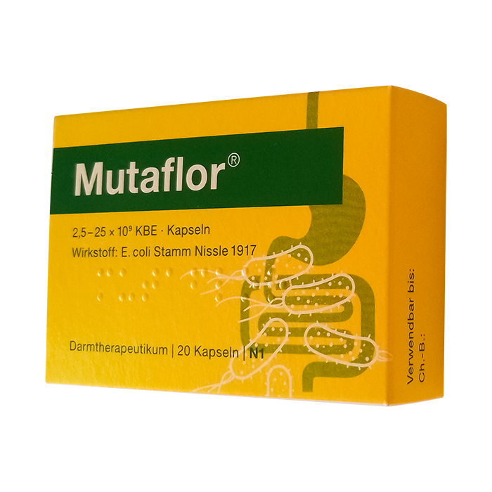 Благодаря своей оболочке капсулы Мутафлор устойчивы к действию желудочного сока и не растворяются вплоть до терминального отдела тонкой кишки. Поскольку активная действующая субстанция (E. coli штамм NISSLE 1917) – коменсал, она быстро заселяет толстый кишечник, не всасываясь и не метаболизируясь, и выходит из кишечника вместе со стулом.